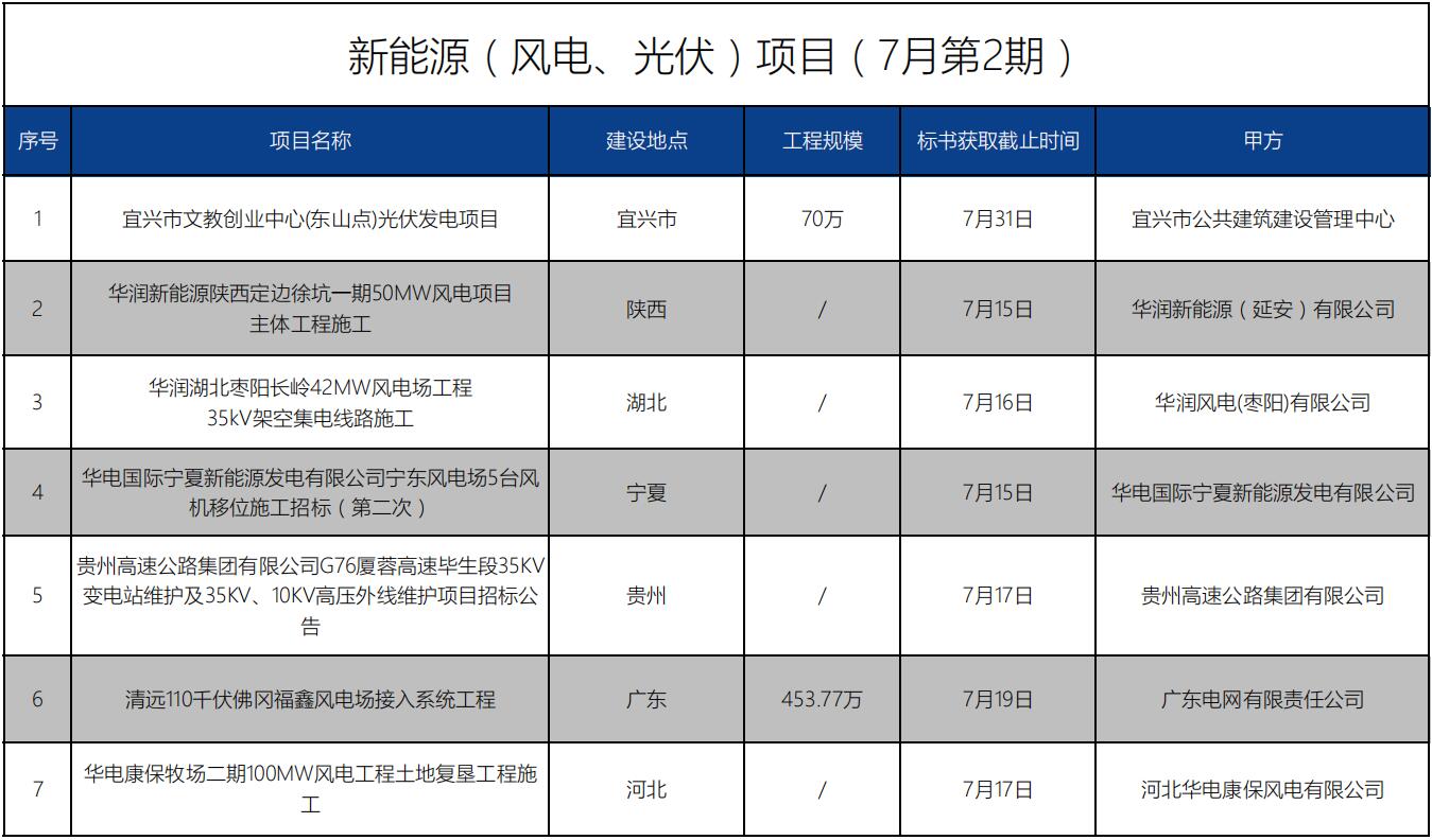 招標(biāo)信息丨新能源(風(fēng)電、光伏)項目(7月第2期)