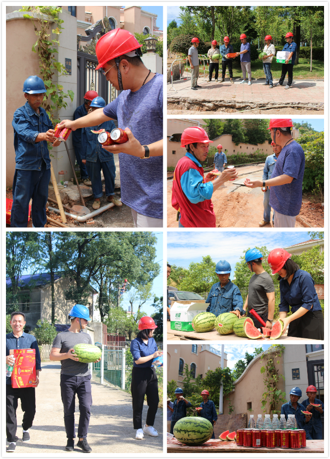 慰問組一行為一線家人們帶來了西瓜、涼茶、飲料等防暑降溫物資,為堅守崗位的一線員工送去了親切問候,對他們不畏艱苦、冒著高溫堅守奮斗表示誠摯的感謝,并叮囑項目現(xiàn)場工作人員在高溫作業(yè)時注意安全,勞逸結合,防止中暑和安全事故的發(fā)生。